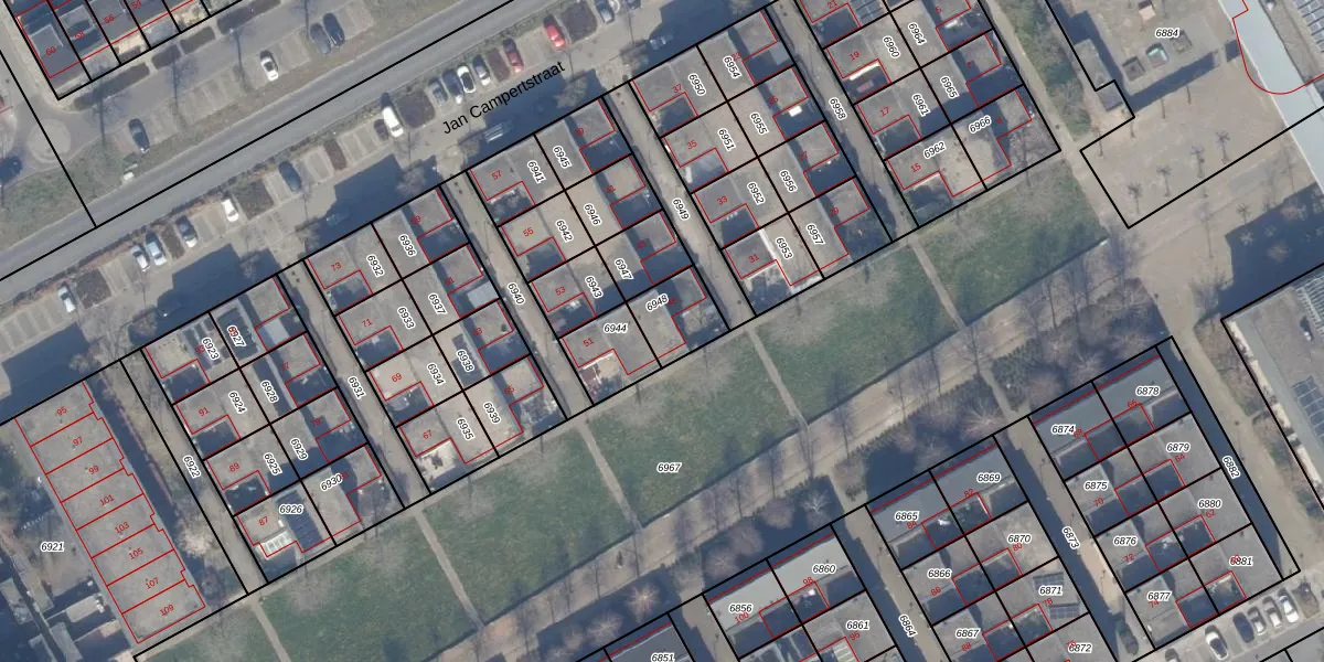 Jan Campertstraat 47 is gelegen op kadastraal perceel AMR04Q6948. Deze kadastrale aanduiding is uniek en wordt gebruikt door het Kadaster om eigendomsrechten en andere zakelijke rechten vast te leggen. Het perceel maakt onderdeel uit van de kadastrale gemeente Almere.