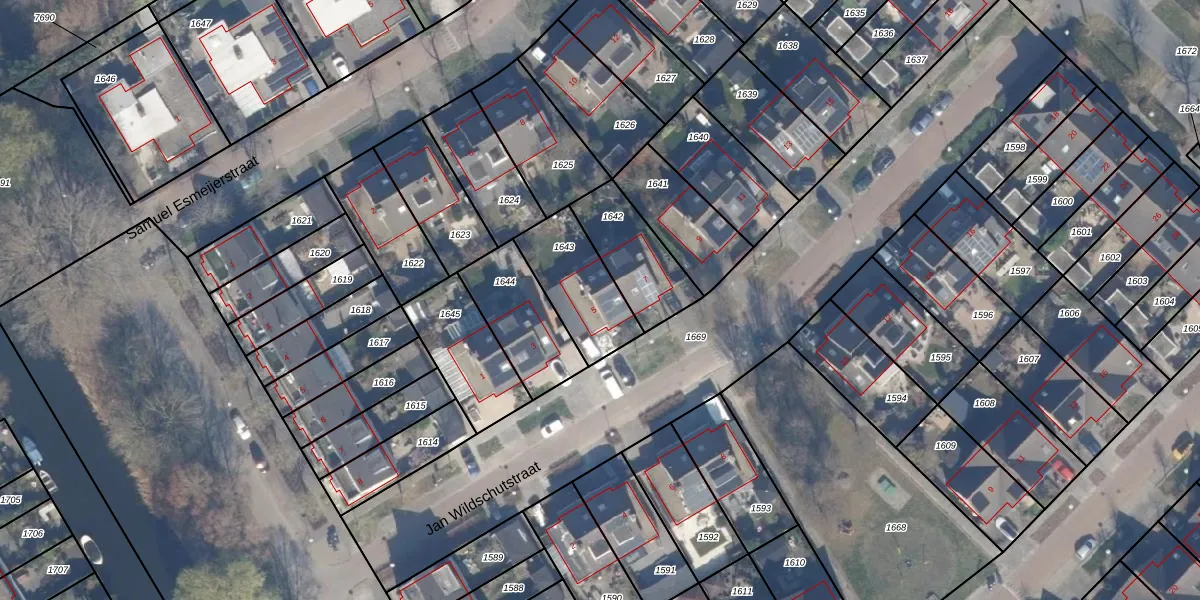 Jan Wildschutstraat 5 is gelegen op kadastraal perceel AMR04P1643. Deze kadastrale aanduiding is uniek en wordt gebruikt door het Kadaster om eigendomsrechten en andere zakelijke rechten vast te leggen. Het perceel maakt onderdeel uit van de kadastrale gemeente Almere.