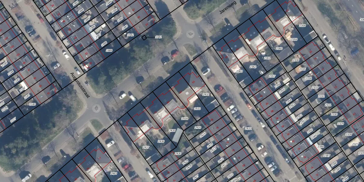 Jarenweg 67 is gelegen op kadastraal perceel AMR04B2433. Deze kadastrale aanduiding is uniek en wordt gebruikt door het Kadaster om eigendomsrechten en andere zakelijke rechten vast te leggen. Het perceel maakt onderdeel uit van de kadastrale gemeente Almere.