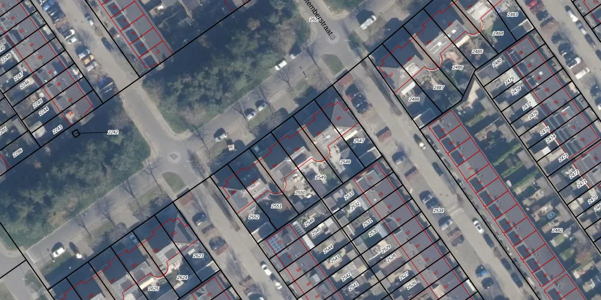 Het adres is gelegen op perceel 2549 in de sectie B en de kadastrale gemeente Almere. De kadastrale aanduiding is aldus AMR04-B-2549. Het perceel is 253 m² groot. Dat is kleiner dan de gemiddelde perceeloppervlakte in Almere, dat op 3327,75 m² ligt. Het grootste perceel in de kadastrale gemeente is 32,12 km². Het kleinste perceel heeft een oppervlakte van 0 m². Dit is het enige adres dat aanwezig is op het perceel. De huidige grenzen van het perceel zijn digitaal in de Basisregistratie Kadaster (BRK) geregistreerd op 22-02-1999.