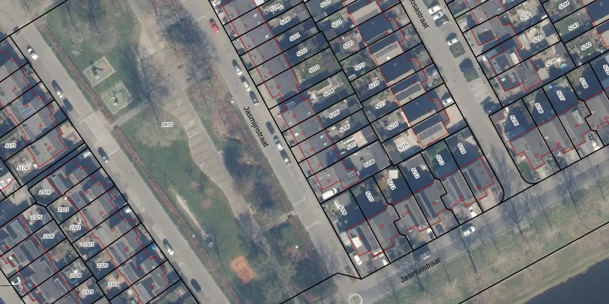 Jasmijnstraat 19 is gelegen op kadastraal perceel AMR04N5206. Deze kadastrale aanduiding is uniek en wordt gebruikt door het Kadaster om eigendomsrechten en andere zakelijke rechten vast te leggen. Het perceel maakt onderdeel uit van de kadastrale gemeente Almere.
