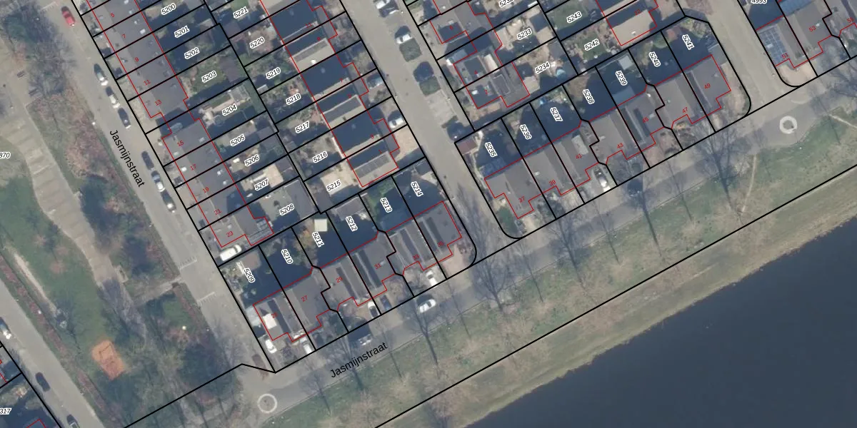 Het perceel waarop Jasmijnstraat 35 staat heeft een oppervlakte van 254 m². Dit is een middelgroot perceel. De perceeloppervlakte wordt geregistreerd door het Kadaster. Gedetailleerde informatie over de maten van dit perceel kunt u vinden in het rapport Kadastrale kaart met maatvoering van Jasmijnstraat 35.
