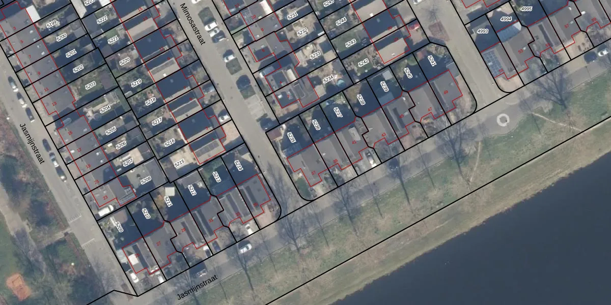 Het perceel waarop Jasmijnstraat 37 staat heeft een oppervlakte van 330 m². Dit is een groot perceel. De perceeloppervlakte wordt geregistreerd door het Kadaster. Gedetailleerde informatie over de maten van dit perceel kunt u vinden in het rapport Kadastrale kaart met maatvoering van Jasmijnstraat 37.