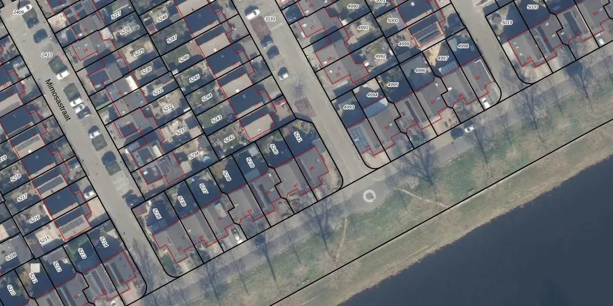 Het perceel waarop Jasmijnstraat 49 staat heeft een oppervlakte van 283 m². Dit is een middelgroot perceel. De perceeloppervlakte wordt geregistreerd door het Kadaster. Gedetailleerde informatie over de maten van dit perceel kunt u vinden in het rapport Kadastrale kaart met maatvoering van Jasmijnstraat 49.