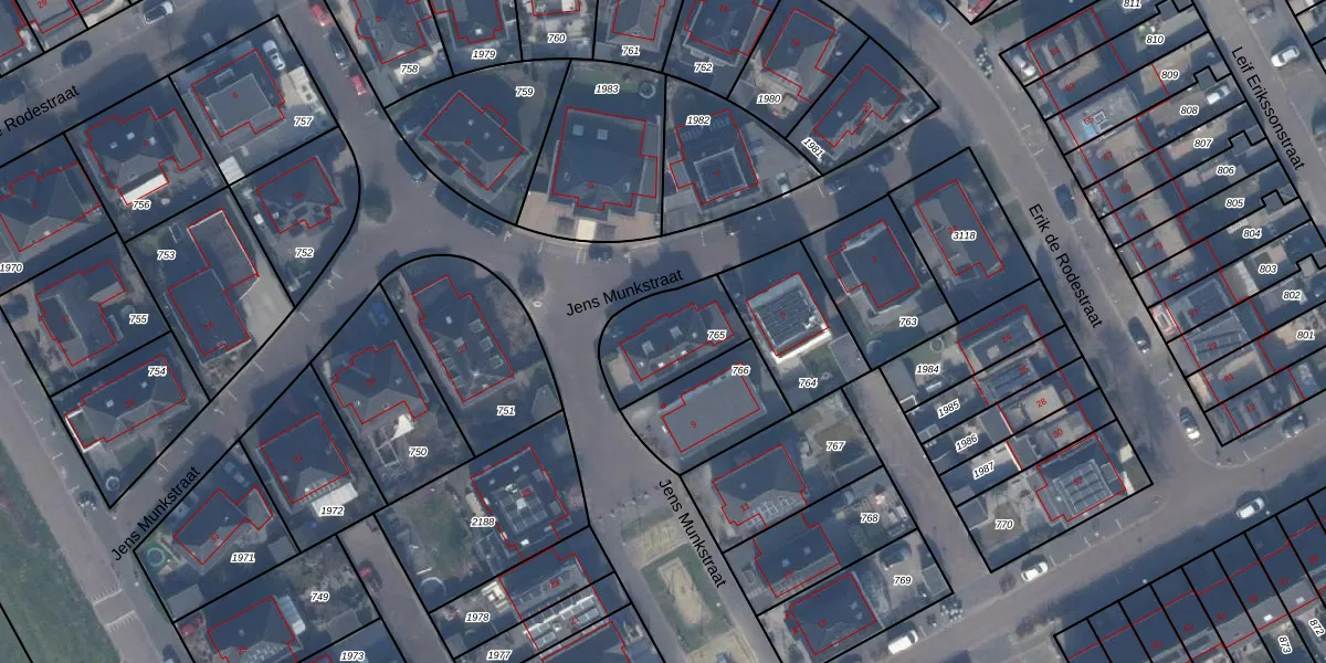 Jens Munkstraat 7 is gelegen op kadastraal perceel AMR04W765. Deze kadastrale aanduiding is uniek en wordt gebruikt door het Kadaster om eigendomsrechten en andere zakelijke rechten vast te leggen. Het perceel maakt onderdeel uit van de kadastrale gemeente Almere.
