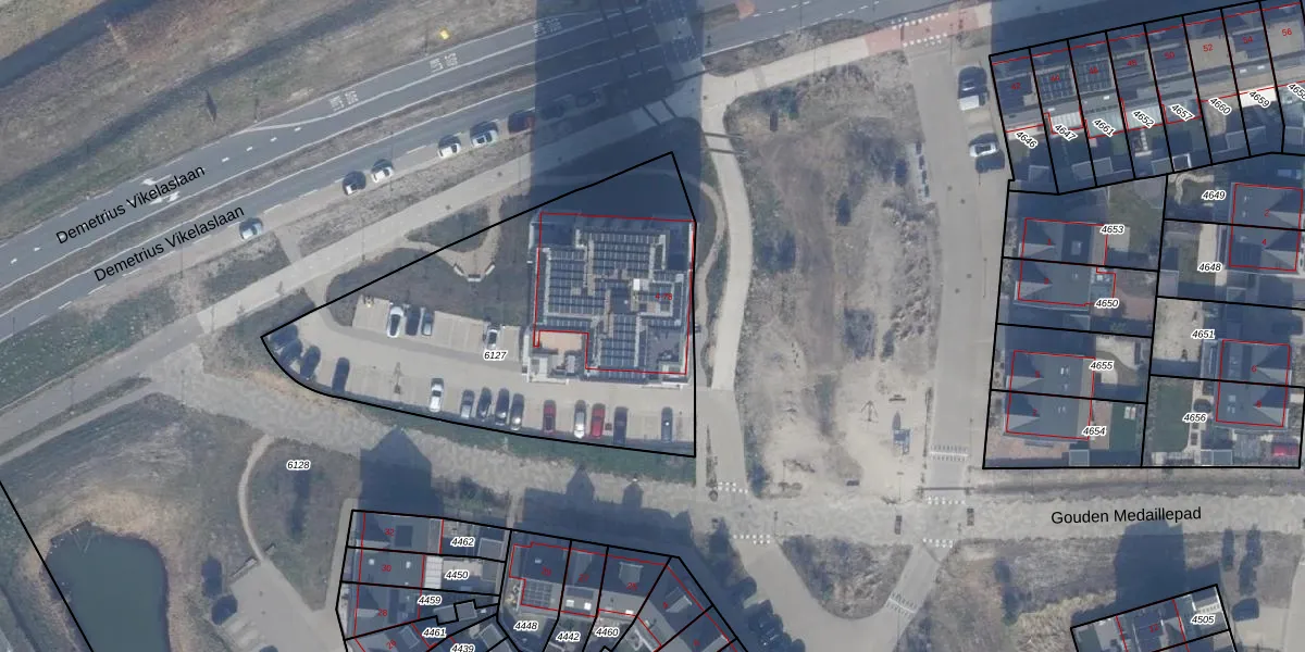 Het perceel waarop het adres ligt is AMR04-W-6127. De afkorting 'AMR04' staat voor kadastrale gemeente Almere. Het perceel is kleiner dan gemiddeld in Almere. Het perceel is 1876 m² groot, terwijl het gemiddelde ligt op 3328,15 m². Het grootste perceel in de kadastrale gemeente is 32,12 km². Het kleinste perceel heeft een oppervlakte van 0 m². Op het perceel liggen in totaal 38 adressen. De huidige grenzen van het perceel zijn digitaal in de Basisregistratie Kadaster (BRK) geregistreerd op 12-01-2026.