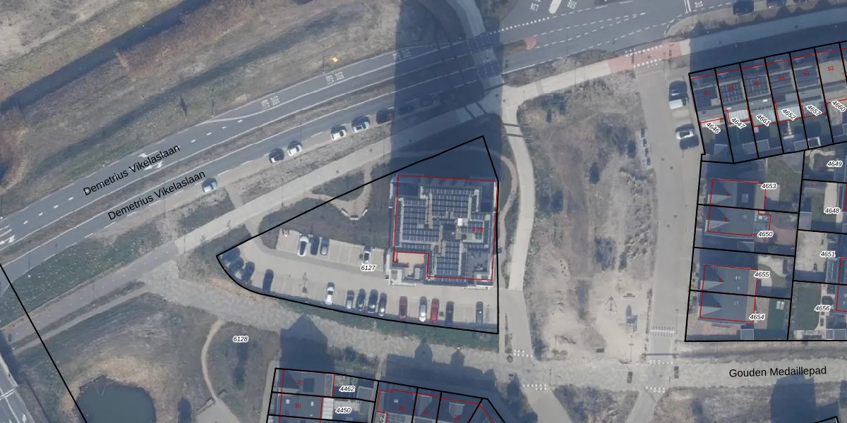 Het perceel waarop het adres ligt is AMR04-W-6127. De afkorting 'AMR04' staat voor kadastrale gemeente Almere. Het perceel is kleiner dan gemiddeld in Almere. Het perceel is 1876 m² groot, terwijl het gemiddelde ligt op 3328,15 m². Het grootste perceel in de kadastrale gemeente is 32,12 km². Het kleinste perceel heeft een oppervlakte van 0 m². Op het perceel liggen in totaal 38 adressen. De huidige grenzen van het perceel zijn digitaal in de Basisregistratie Kadaster (BRK) geregistreerd op 12-01-2026.