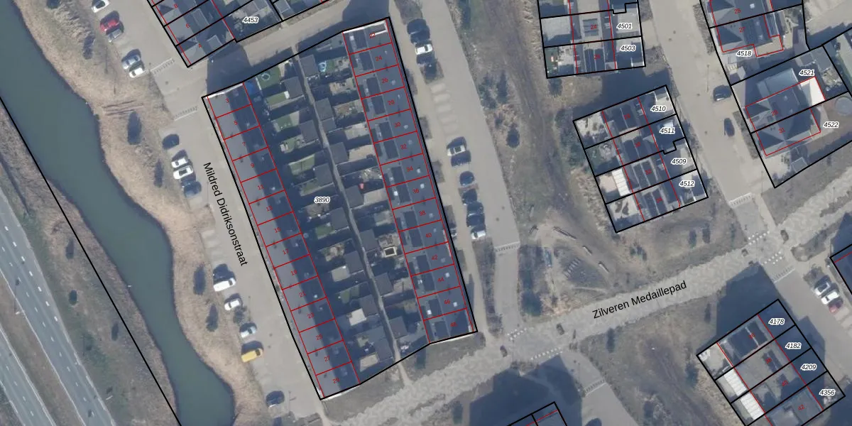 Het perceel waarop Jesse Owensstraat 38 staat heeft een oppervlakte van 3355 m². Dit is een zeer groot perceel. De perceeloppervlakte wordt geregistreerd door het Kadaster. Gedetailleerde informatie over de maten van dit perceel kunt u vinden in het rapport Kadastrale kaart met maatvoering van Jesse Owensstraat 38.