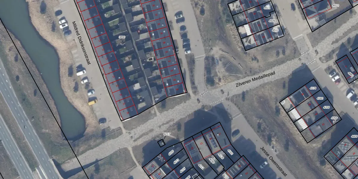 Het perceel waarop Jesse Owensstraat 48 staat heeft een oppervlakte van 3355 m². Dit is een zeer groot perceel. De perceeloppervlakte wordt geregistreerd door het Kadaster. Gedetailleerde informatie over de maten van dit perceel kunt u vinden in het rapport Kadastrale kaart met maatvoering van Jesse Owensstraat 48.