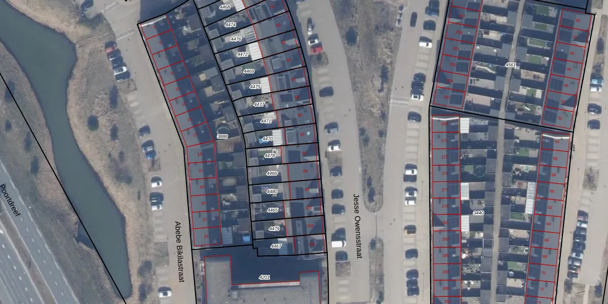 Jesse Owensstraat 94 is gelegen op kadastraal perceel AMR04W4478. Deze kadastrale aanduiding is uniek en wordt gebruikt door het Kadaster om eigendomsrechten en andere zakelijke rechten vast te leggen. Het perceel maakt onderdeel uit van de kadastrale gemeente Almere.