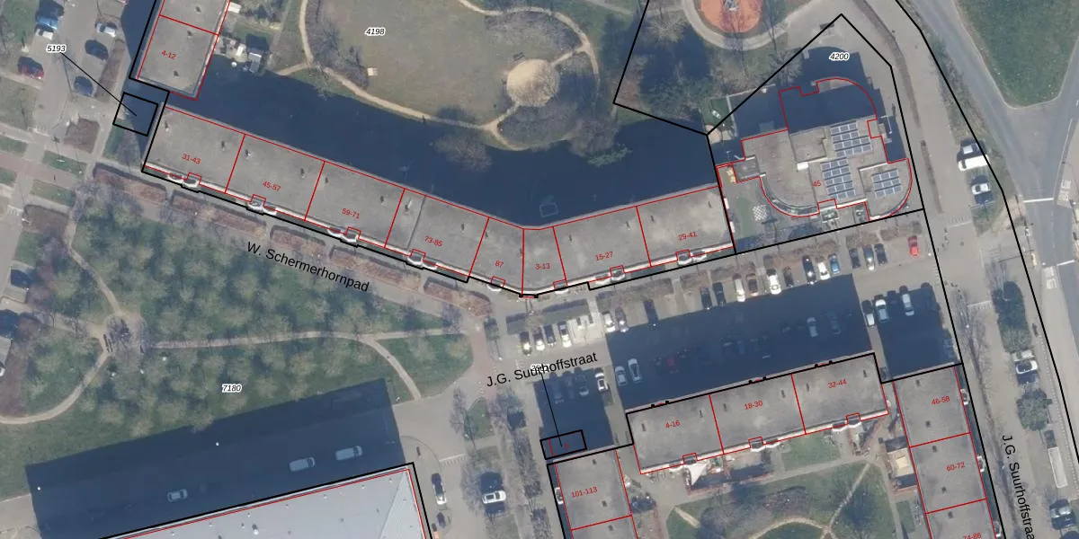 Het perceel waarop J.G. Suurhoffstraat 13 staat heeft een oppervlakte van 7463 m². Dit is een zeer groot perceel. De perceeloppervlakte wordt geregistreerd door het Kadaster. Gedetailleerde informatie over de maten van dit perceel kunt u vinden in het rapport Kadastrale kaart met maatvoering van J.G. Suurhoffstraat 13.