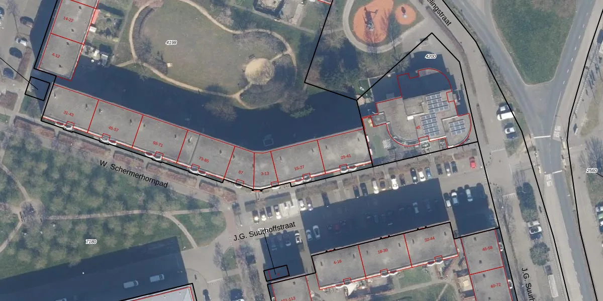 Het perceel waarop J.G. Suurhoffstraat 27 staat heeft een oppervlakte van 7463 m². Dit is een zeer groot perceel. De perceeloppervlakte wordt geregistreerd door het Kadaster. Gedetailleerde informatie over de maten van dit perceel kunt u vinden in het rapport Kadastrale kaart met maatvoering van J.G. Suurhoffstraat 27.