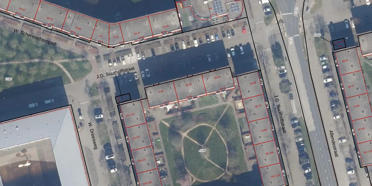 Het perceel waarop J.G. Suurhoffstraat 28 staat heeft een oppervlakte van 6382 m². Dit is een zeer groot perceel. De perceeloppervlakte wordt geregistreerd door het Kadaster. Gedetailleerde informatie over de maten van dit perceel kunt u vinden in het rapport Kadastrale kaart met maatvoering van J.G. Suurhoffstraat 28.