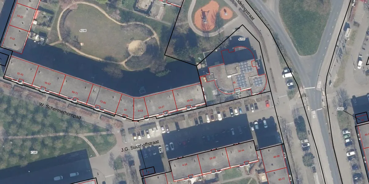 Het perceel waarop J.G. Suurhoffstraat 39 staat heeft een oppervlakte van 7463 m². Dit is een zeer groot perceel. De perceeloppervlakte wordt geregistreerd door het Kadaster. Gedetailleerde informatie over de maten van dit perceel kunt u vinden in het rapport Kadastrale kaart met maatvoering van J.G. Suurhoffstraat 39.