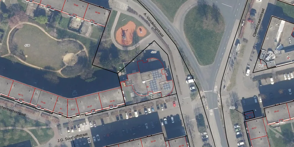 Gebruik de zoekbalk of klik op een perceel voor informatie over de adressen binnen dit perceel.