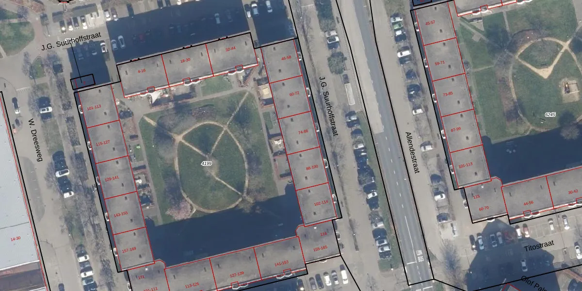 Het perceel waarop J.G. Suurhoffstraat 86 staat heeft een oppervlakte van 6382 m². Dit is een zeer groot perceel. De perceeloppervlakte wordt geregistreerd door het Kadaster. Gedetailleerde informatie over de maten van dit perceel kunt u vinden in het rapport Kadastrale kaart met maatvoering van J.G. Suurhoffstraat 86.