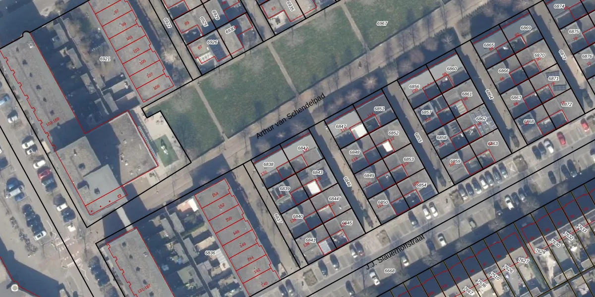 Gebruik de zoekbalk of klik op een perceel voor informatie over de adressen binnen dit perceel.