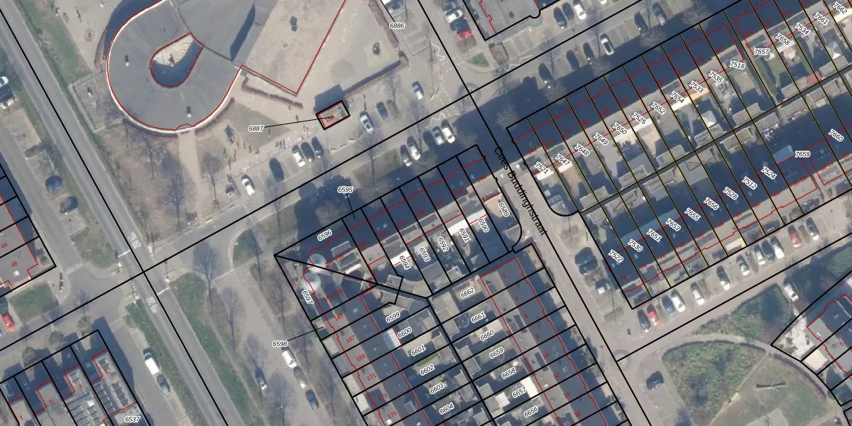 Het adres ligt op het perceel AMR04-Q-6592, dat zich in de kadastrale gemeente Almere bevindt. De gemiddelde perceelgrootte in Almere is 3327,75 m². Dit perceel is kleiner: de perceeloppervlakte bedraagt 132 m². De grootste perceeloppervlakte in de kadastrale gemeente is 32,12 km². De kleinste oppervlakte bedraagt 0 m². Er zijn geen andere adressen aanwezig op het perceel. De laatste wijziging in het de Basisregistratie Kadaster (BRK) was op 24-12-2002.
