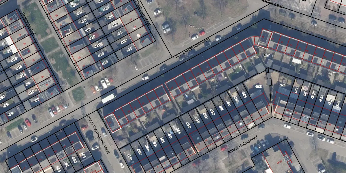 Het perceel waarop J.J. Slauerhoffstraat 19 staat heeft een oppervlakte van 5629 m². Dit is een zeer groot perceel. De perceeloppervlakte wordt geregistreerd door het Kadaster. Gedetailleerde informatie over de maten van dit perceel kunt u vinden in het rapport Kadastrale kaart met maatvoering van J.J. Slauerhoffstraat 19.