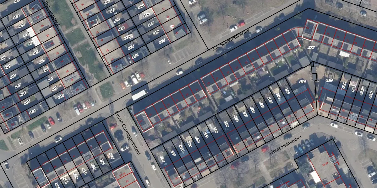 Het perceel waarop J.J. Slauerhoffstraat 23 staat heeft een oppervlakte van 5629 m². Dit is een zeer groot perceel. De perceeloppervlakte wordt geregistreerd door het Kadaster. Gedetailleerde informatie over de maten van dit perceel kunt u vinden in het rapport Kadastrale kaart met maatvoering van J.J. Slauerhoffstraat 23.