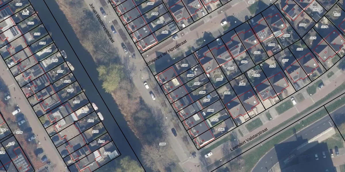 Het perceel waarop Johan Westerveldstraat 18 staat heeft een oppervlakte van 159 m². Dit is een middelgroot perceel. De perceeloppervlakte wordt geregistreerd door het Kadaster. Gedetailleerde informatie over de maten van dit perceel kunt u vinden in het rapport Kadastrale kaart met maatvoering van Johan Westerveldstraat 18.