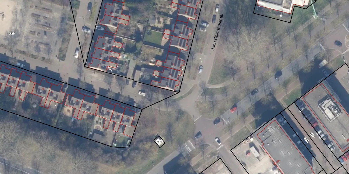Het perceel waarop John Coltranestraat 1 staat heeft een oppervlakte van 6728 m². Dit is een zeer groot perceel. De perceeloppervlakte wordt geregistreerd door het Kadaster. Gedetailleerde informatie over de maten van dit perceel kunt u vinden in het rapport Kadastrale kaart met maatvoering van John Coltranestraat 1.