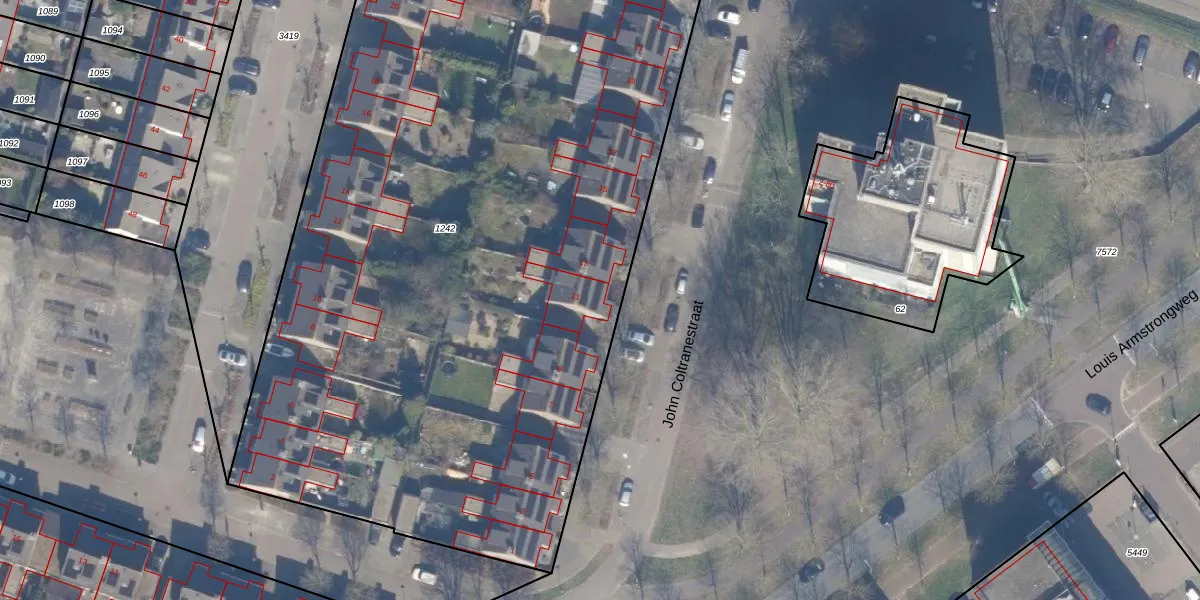 Het perceel waarop John Coltranestraat 11 staat heeft een oppervlakte van 6728 m². Dit is een zeer groot perceel. De perceeloppervlakte wordt geregistreerd door het Kadaster. Gedetailleerde informatie over de maten van dit perceel kunt u vinden in het rapport Kadastrale kaart met maatvoering van John Coltranestraat 11.