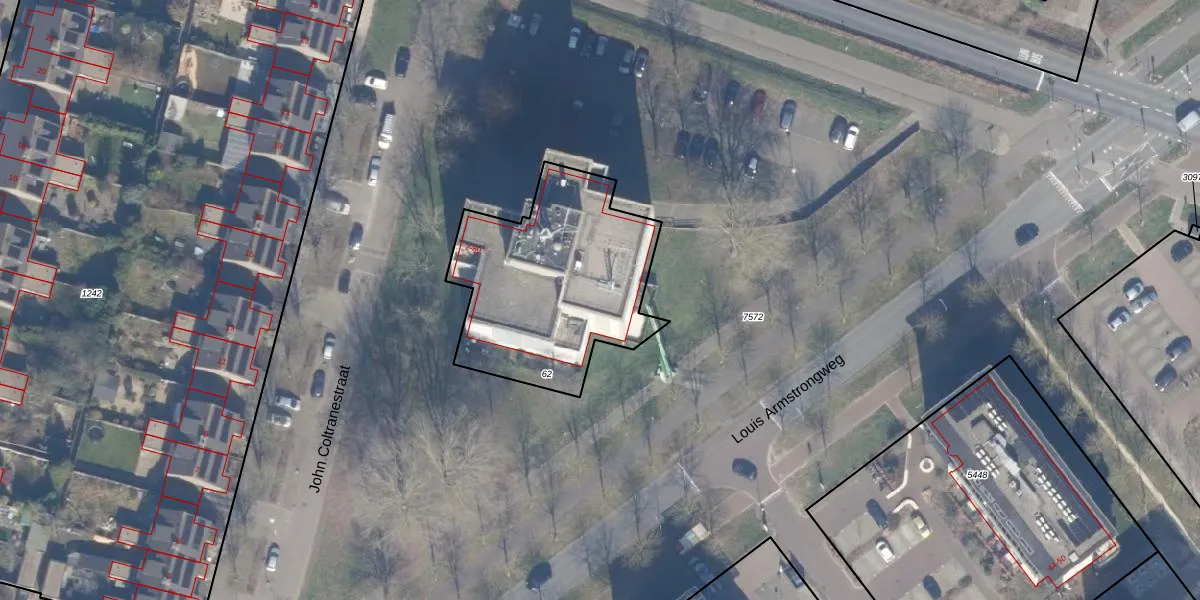 Het perceel waarop John Coltranestraat 36 staat heeft een oppervlakte van 921 m². Dit is een groot perceel. De perceeloppervlakte wordt geregistreerd door het Kadaster. Gedetailleerde informatie over de maten van dit perceel kunt u vinden in het rapport Kadastrale kaart met maatvoering van John Coltranestraat 36.