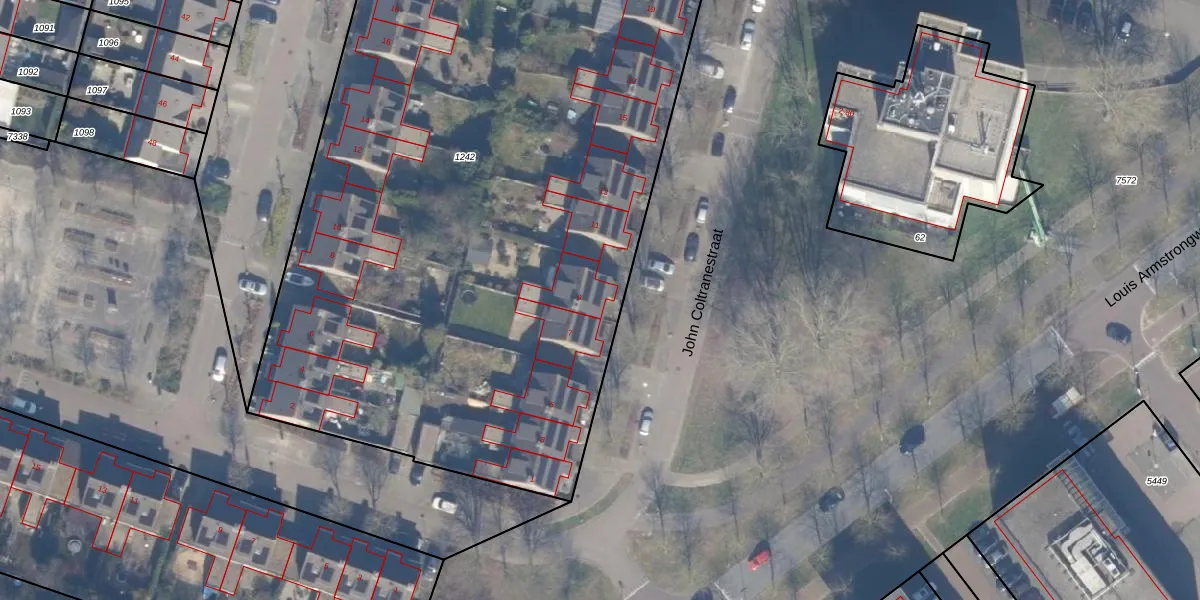Het perceel waarop John Coltranestraat 9 staat heeft een oppervlakte van 6728 m². Dit is een zeer groot perceel. De perceeloppervlakte wordt geregistreerd door het Kadaster. Gedetailleerde informatie over de maten van dit perceel kunt u vinden in het rapport Kadastrale kaart met maatvoering van John Coltranestraat 9.