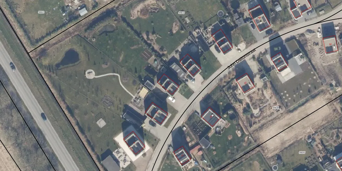Het perceel waarop John Daltonstraat 17 staat heeft een oppervlakte van 1,6 ha. Dit is een zeer groot perceel. De perceeloppervlakte wordt geregistreerd door het Kadaster. Gedetailleerde informatie over de maten van dit perceel kunt u vinden in het rapport Kadastrale kaart met maatvoering van John Daltonstraat 17.