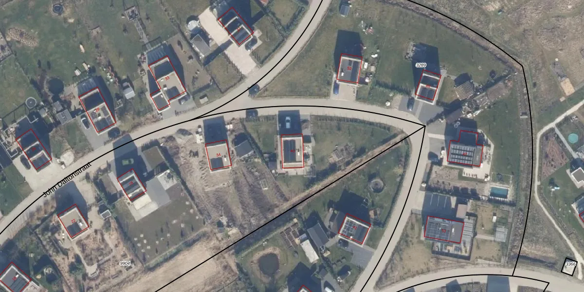 Het perceel waarop John Daltonstraat 40 staat heeft een oppervlakte van 7353 m². Dit is een zeer groot perceel. De perceeloppervlakte wordt geregistreerd door het Kadaster. Gedetailleerde informatie over de maten van dit perceel kunt u vinden in het rapport Kadastrale kaart met maatvoering van John Daltonstraat 40.