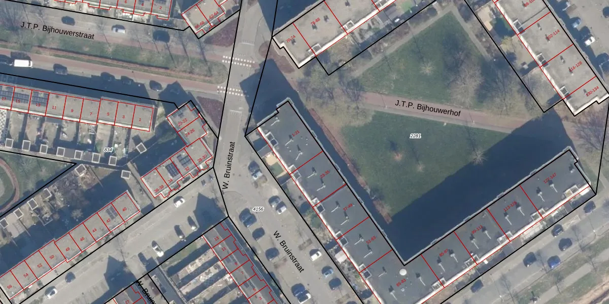 Het perceel waarop J.T.P. Bijhouwerhof 11 staat heeft een oppervlakte van 2621 m². Dit is een zeer groot perceel. De perceeloppervlakte wordt geregistreerd door het Kadaster. Gedetailleerde informatie over de maten van dit perceel kunt u vinden in het rapport Kadastrale kaart met maatvoering van J.T.P. Bijhouwerhof 11.