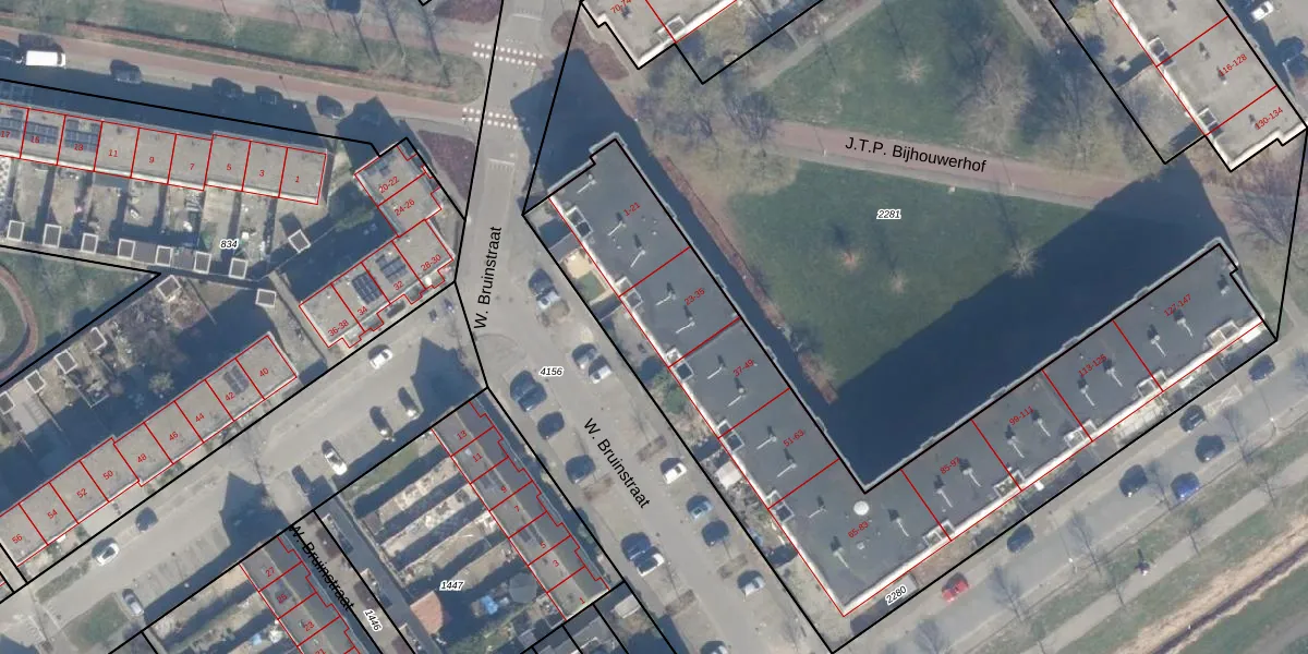 Het perceel waarop J.T.P. Bijhouwerhof 35 staat heeft een oppervlakte van 2621 m². Dit is een zeer groot perceel. De perceeloppervlakte wordt geregistreerd door het Kadaster. Gedetailleerde informatie over de maten van dit perceel kunt u vinden in het rapport Kadastrale kaart met maatvoering van J.T.P. Bijhouwerhof 35.