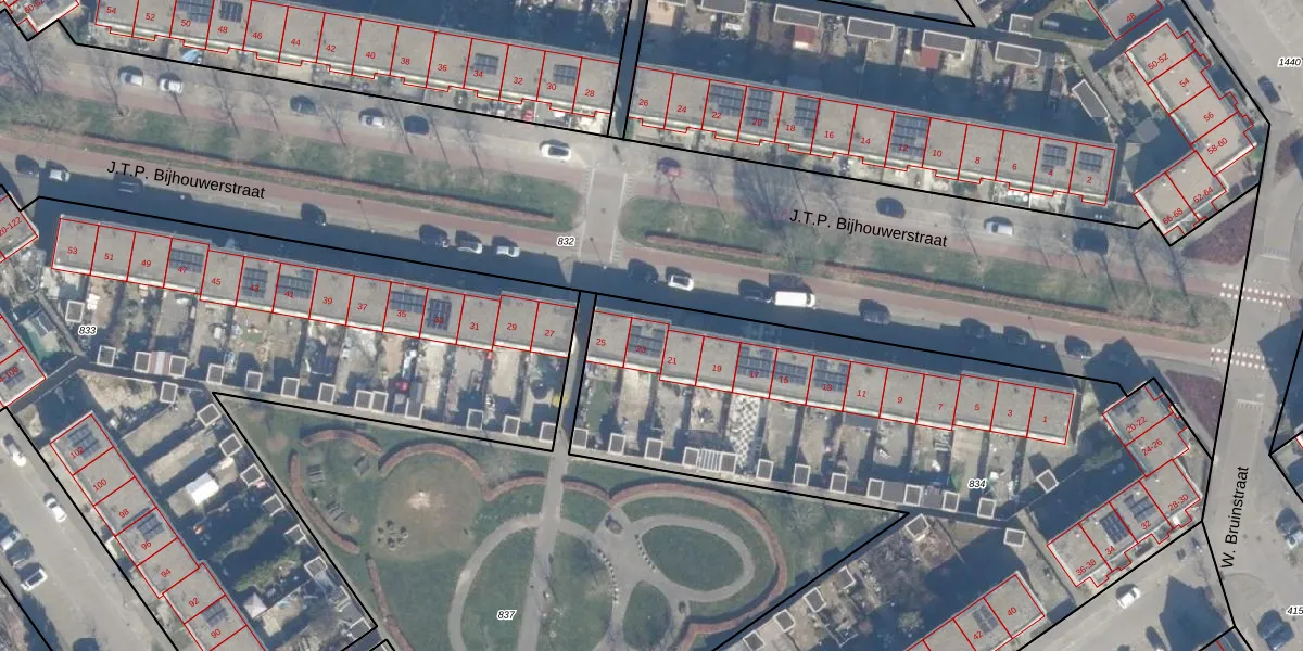 Het perceel waarop J.T.P. Bijhouwerstraat 23 staat heeft een oppervlakte van 3931 m². Dit is een zeer groot perceel. De perceeloppervlakte wordt geregistreerd door het Kadaster. Gedetailleerde informatie over de maten van dit perceel kunt u vinden in het rapport Kadastrale kaart met maatvoering van J.T.P. Bijhouwerstraat 23.