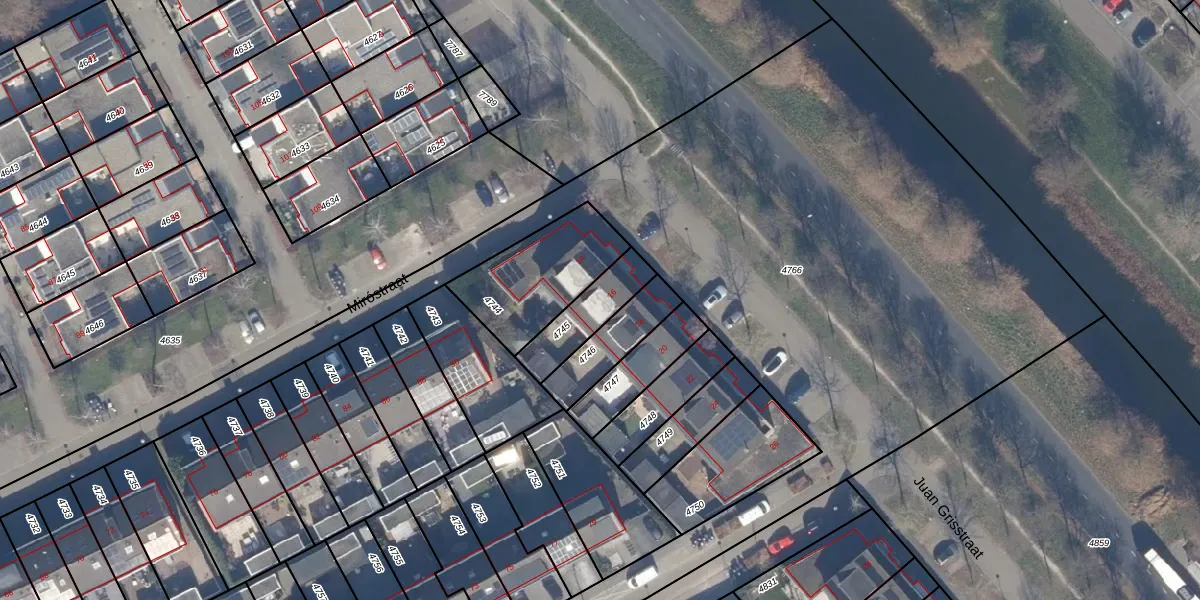 Juan Grisstraat 16 is gelegen op kadastraal perceel AMR04P4745. Deze kadastrale aanduiding is uniek en wordt gebruikt door het Kadaster om eigendomsrechten en andere zakelijke rechten vast te leggen. Het perceel maakt onderdeel uit van de kadastrale gemeente Almere.