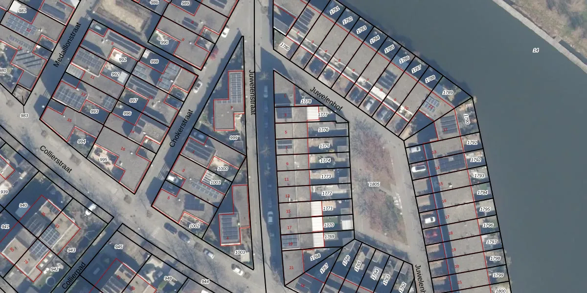 Het perceel waarop Juwelenstraat 7 staat heeft een oppervlakte van 135 m². Dit is een middelgroot perceel. De perceeloppervlakte wordt geregistreerd door het Kadaster. Gedetailleerde informatie over de maten van dit perceel kunt u vinden in het rapport Kadastrale kaart met maatvoering van Juwelenstraat 7.
