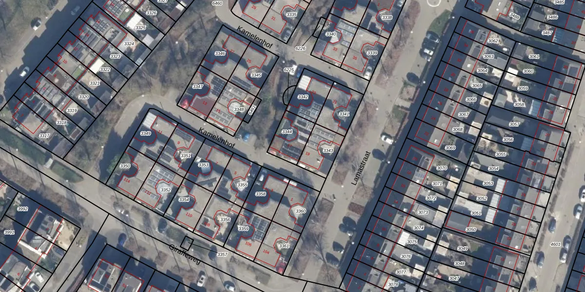 Het perceel waarop Kamelenhof 17 staat heeft een oppervlakte van 174 m². Dit is een middelgroot perceel. De perceeloppervlakte wordt geregistreerd door het Kadaster. Gedetailleerde informatie over de maten van dit perceel kunt u vinden in het rapport Kadastrale kaart met maatvoering van Kamelenhof 17.