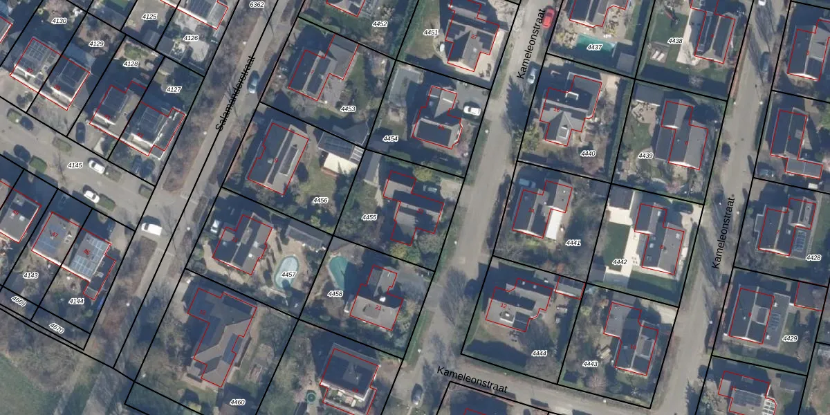 Kameleonstraat 23 is gelegen op kadastraal perceel AMR04N4455. Deze kadastrale aanduiding is uniek en wordt gebruikt door het Kadaster om eigendomsrechten en andere zakelijke rechten vast te leggen. Het perceel maakt onderdeel uit van de kadastrale gemeente Almere.
