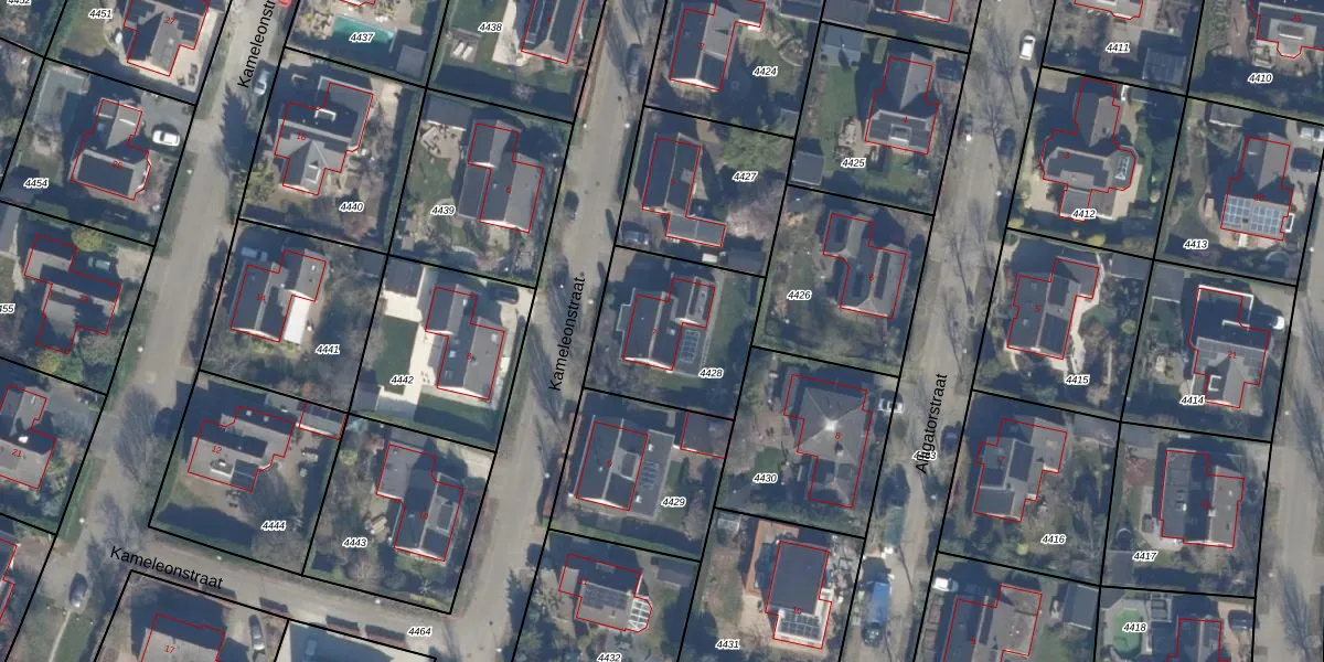 Het perceel waarop Kameleonstraat 7 staat heeft een oppervlakte van 517 m². Dit is een groot perceel. De perceeloppervlakte wordt geregistreerd door het Kadaster. Gedetailleerde informatie over de maten van dit perceel kunt u vinden in het rapport Kadastrale kaart met maatvoering van Kameleonstraat 7.