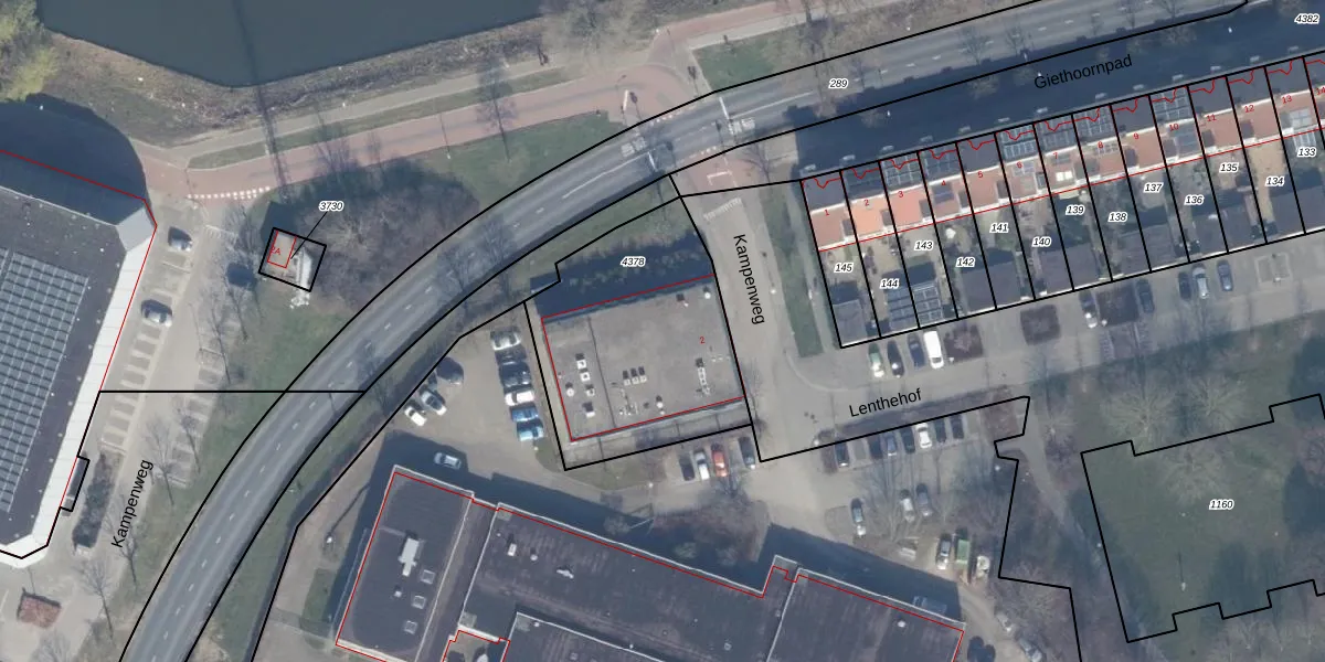 Gebruik de zoekbalk of klik op een perceel voor informatie over de adressen binnen dit perceel.