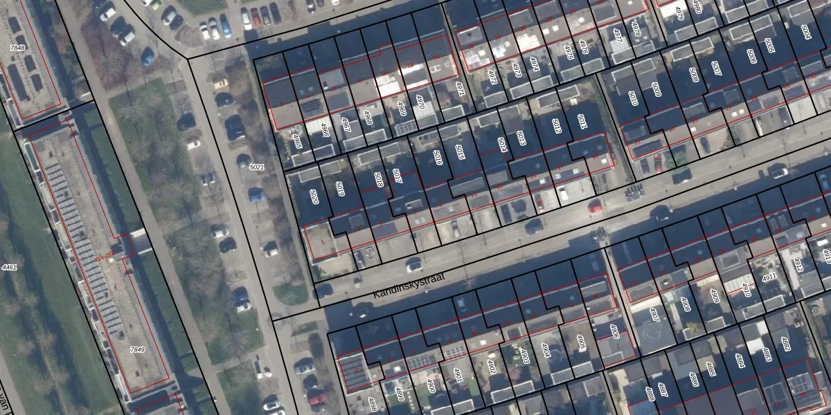 Het perceel waarop Kandinskystraat 7 staat heeft een oppervlakte van 202 m². Dit is een middelgroot perceel. De perceeloppervlakte wordt geregistreerd door het Kadaster. Gedetailleerde informatie over de maten van dit perceel kunt u vinden in het rapport Kadastrale kaart met maatvoering van Kandinskystraat 7.