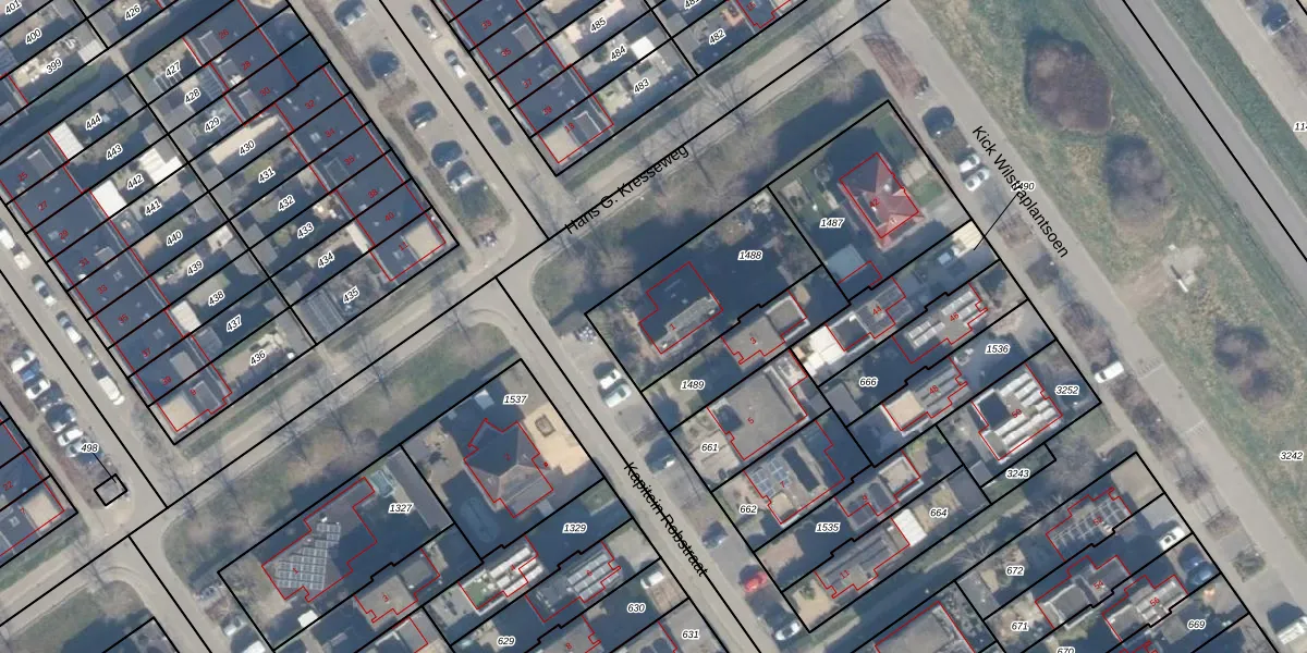 Gebruik de zoekbalk of klik op een perceel voor informatie over de adressen binnen dit perceel.