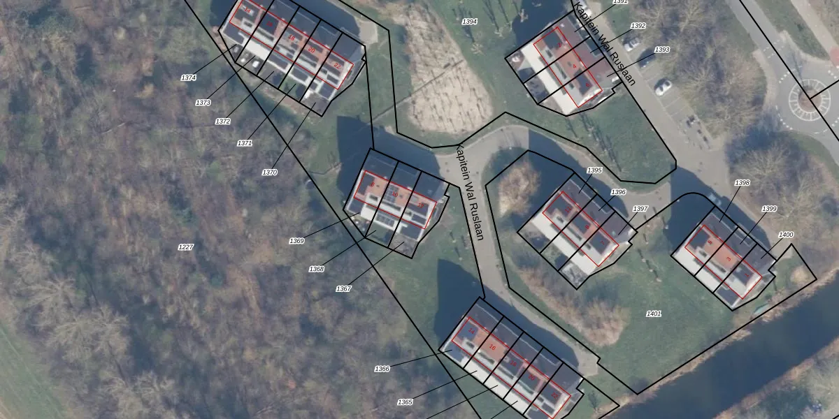 Het perceel waarop Kapitein Wal Ruslaan 12 staat heeft een oppervlakte van 148 m². Dit is een middelgroot perceel. De perceeloppervlakte wordt geregistreerd door het Kadaster. Gedetailleerde informatie over de maten van dit perceel kunt u vinden in het rapport Kadastrale kaart met maatvoering van Kapitein Wal Ruslaan 12.