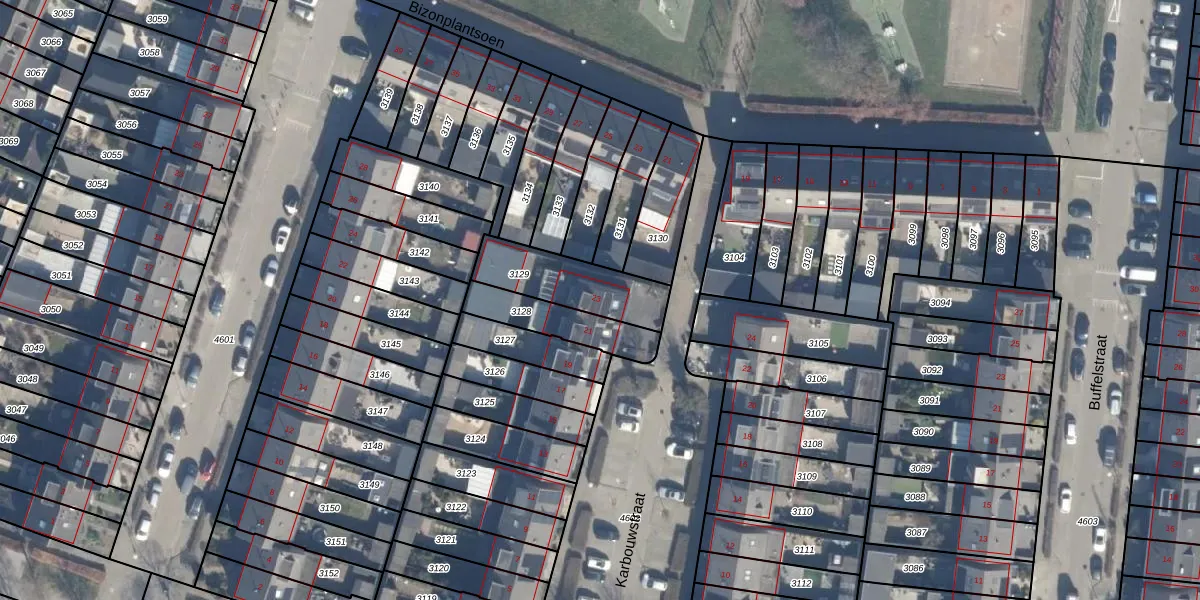 Het perceel waarop Karbouwstraat 23 staat heeft een oppervlakte van 262 m². Dit is een middelgroot perceel. De perceeloppervlakte wordt geregistreerd door het Kadaster. Gedetailleerde informatie over de maten van dit perceel kunt u vinden in het rapport Kadastrale kaart met maatvoering van Karbouwstraat 23.