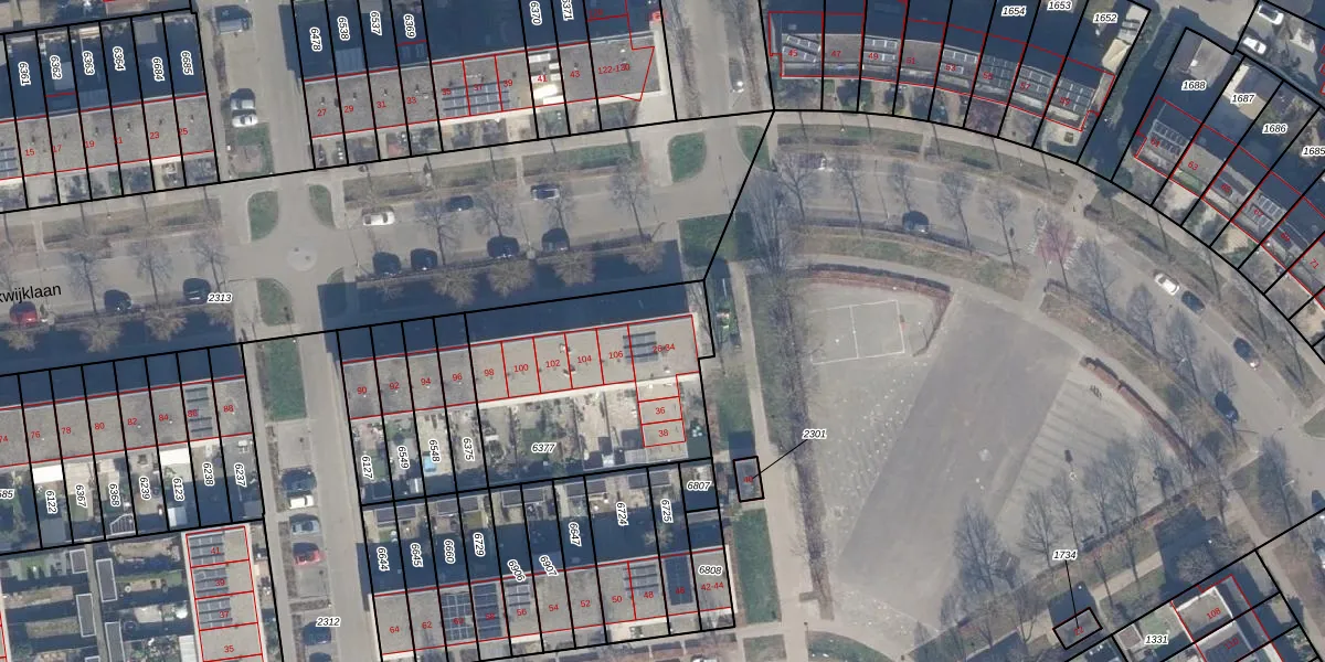 Het perceel waarop het adres ligt is AMR04-U-6377. De afkorting 'AMR04' staat voor kadastrale gemeente Almere. Het perceel is kleiner dan gemiddeld in Almere. Het perceel is 939 m² groot, terwijl het gemiddelde ligt op 3329,36 m². De grootste perceeloppervlakte in de kadastrale gemeente is 32,12 km². De kleinste oppervlakte bedraagt 0 m². Er zijn 12 adressen aanwezig op het perceel. De laatste wijziging in het de Basisregistratie Kadaster (BRK) was op 21-04-2021.