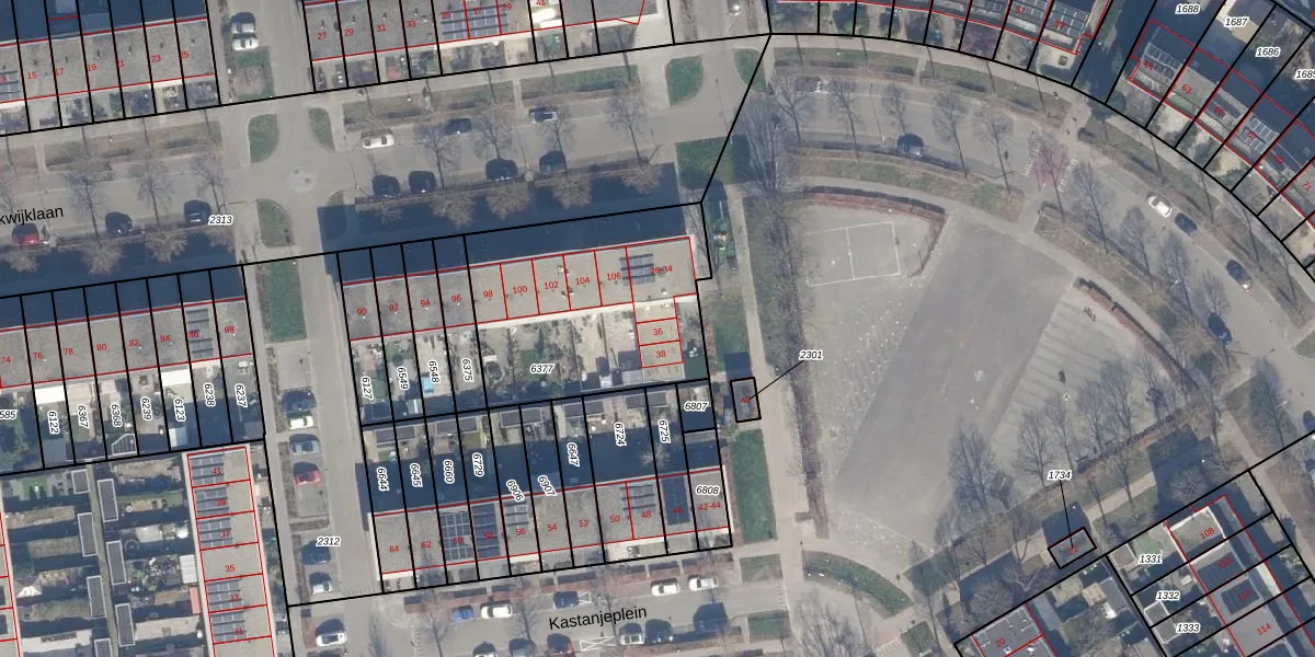 Het perceel waarop Kastanjeplein 36 staat heeft een oppervlakte van 939 m². Dit is een groot perceel. De perceeloppervlakte wordt geregistreerd door het Kadaster. Gedetailleerde informatie over de maten van dit perceel kunt u vinden in het rapport Kadastrale kaart met maatvoering van Kastanjeplein 36.