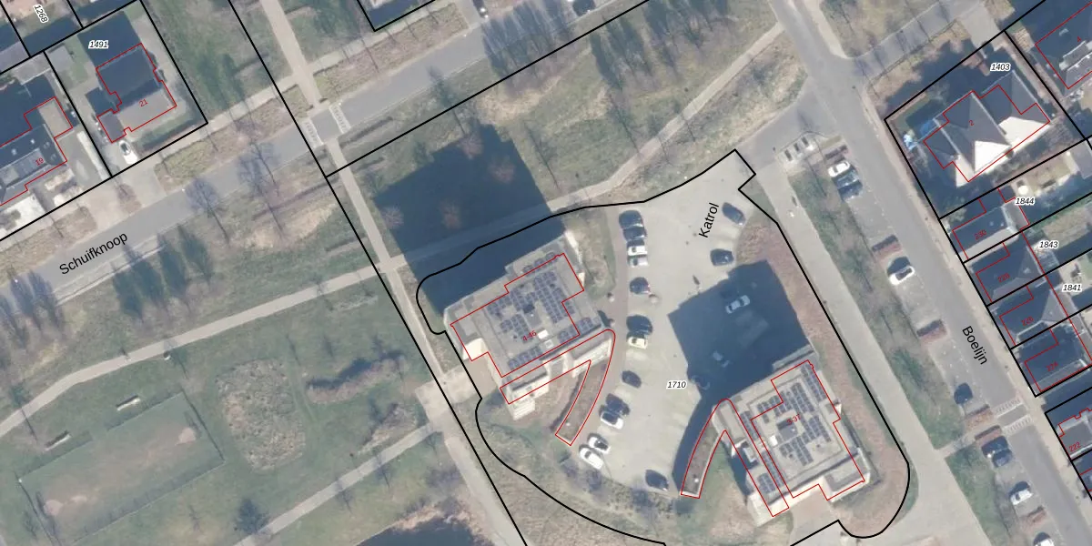 Het perceel waarop Katrol 12 staat heeft een oppervlakte van 4275 m². Dit is een zeer groot perceel. De perceeloppervlakte wordt geregistreerd door het Kadaster. Gedetailleerde informatie over de maten van dit perceel kunt u vinden in het rapport Kadastrale kaart met maatvoering van Katrol 12.