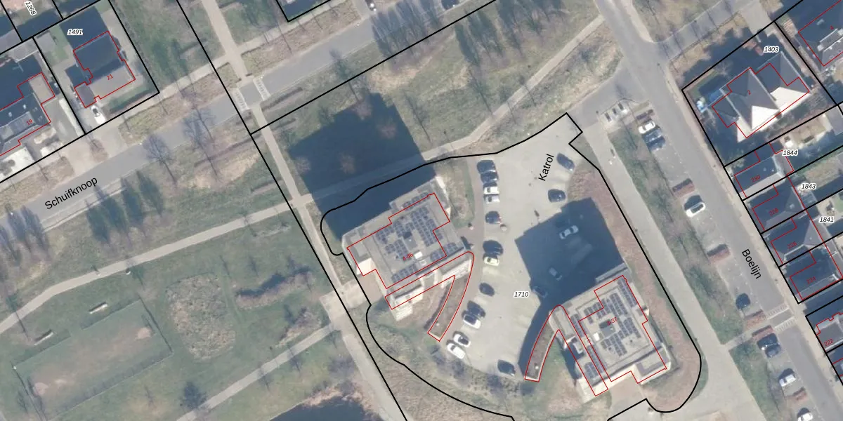 Het perceel waarop Katrol 20 staat heeft een oppervlakte van 4275 m². Dit is een zeer groot perceel. De perceeloppervlakte wordt geregistreerd door het Kadaster. Gedetailleerde informatie over de maten van dit perceel kunt u vinden in het rapport Kadastrale kaart met maatvoering van Katrol 20.