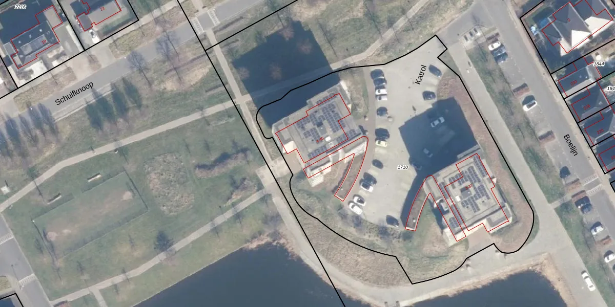 Het perceel waarop Katrol 24 staat heeft een oppervlakte van 4275 m². Dit is een zeer groot perceel. De perceeloppervlakte wordt geregistreerd door het Kadaster. Gedetailleerde informatie over de maten van dit perceel kunt u vinden in het rapport Kadastrale kaart met maatvoering van Katrol 24.