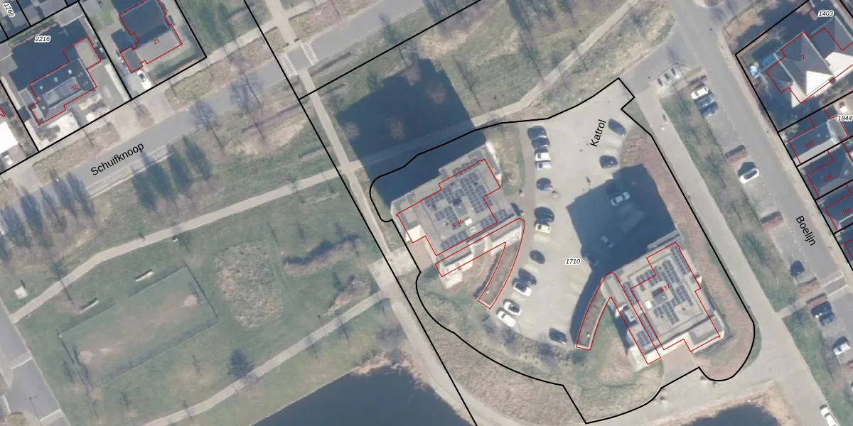 Het perceel waarop Katrol 26 staat heeft een oppervlakte van 4275 m². Dit is een zeer groot perceel. De perceeloppervlakte wordt geregistreerd door het Kadaster. Gedetailleerde informatie over de maten van dit perceel kunt u vinden in het rapport Kadastrale kaart met maatvoering van Katrol 26.